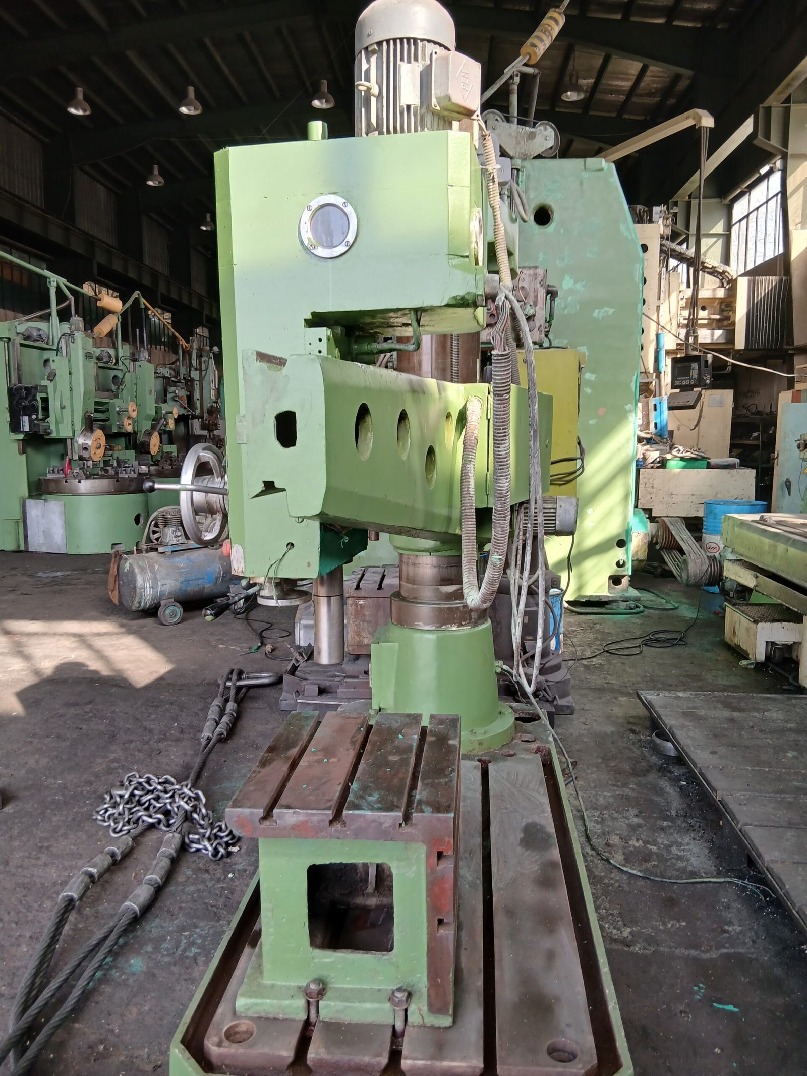 دریل رادیال برند ویدا (Weida) ساخت چین با بازوی بلند ۱۶۰ سانتیمتر، مورس ۵ و ریل/گیربکس در وضعیت عالی – ایدهآل برای سوراخکاری دقیق قطعات بزرگ در صنایع سنگین، سولهسازی و سازههای فلزی.