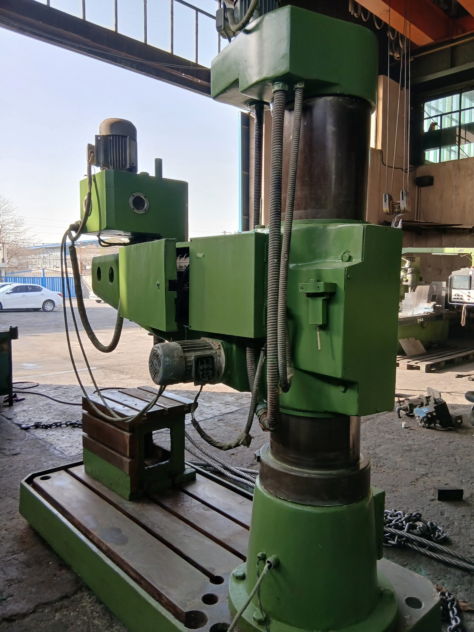 این دریل رادیال در صنایع سولهسازی، ساخت سازههای فلزی، استراکچر، قالبسازی بزرگ، تعمیرات سنگین ماشینآلات، پتروشیمی، کشتیسازی و کارگاههای تولید قطعات حجیم بسیار پرکاربرد است. بهویژه جایی که قطعات سنگین جابجایی ندارند و نیاز به سوراخکاری در چندین نقطه دور از هم وجود دارد.